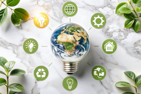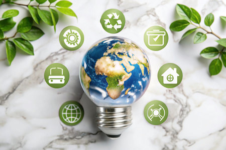 Sustainable Earth Lightbulb with Recycling Icons