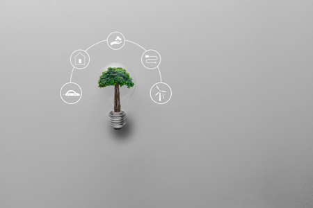 Saving energy and environment. Tree growth in light bulb for saving Ecology energy nature and reduce global warming for improve society, community and environment in future icon. Environment Concept. Eco and Technology concept