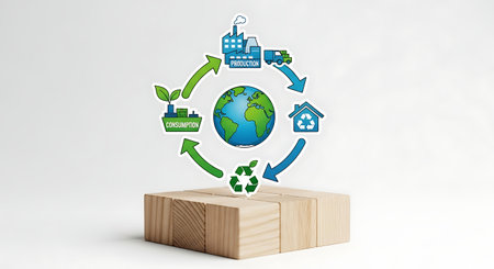 Circular economy is eco friendly. Production consumption recycling loop.