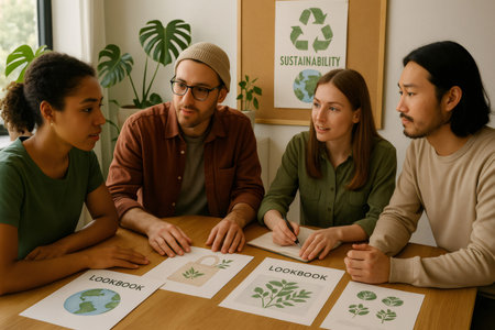 Four designers working together on a new sustainable and eco friendly fashion brand, collaborating on a lookbook