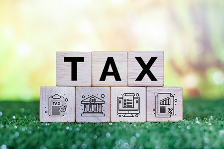Tax concept with wooden blocks on table