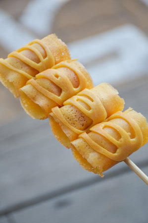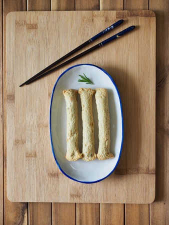 Rolls on sticks - Japanese dish, Tokyo, Japan. Close-up