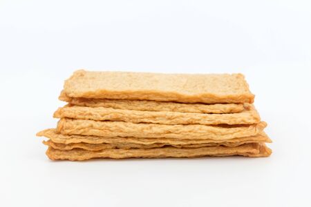 Food containing fish and flour. Fried food. Thin fry. Chewy food