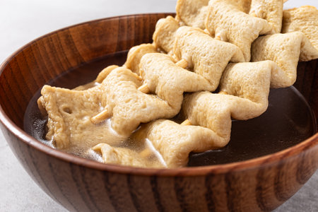 Korean street food. Odeng or Stick of fish cakes. They are skewered on a stick and left in a delicious broth.