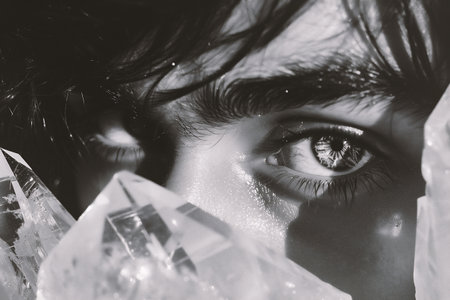 Beautiful young woman with crystal in her eyes. Close-up.
