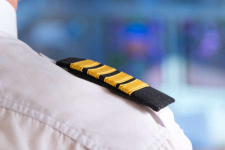 Close up of captain's epaulettes in the cockip of commercial airplane