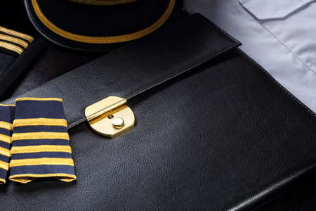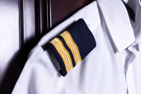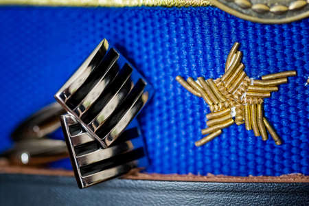 Close up of captain's epaulettes in the cockipt of commercial airplane