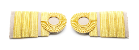 A pair of epaulette gold bar second officers, isolated on white overlapping