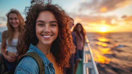 Joyful adventurers embracing a travel oriented lifestyle, radiating well being outdoors.