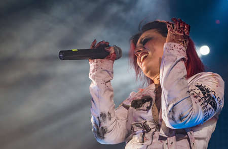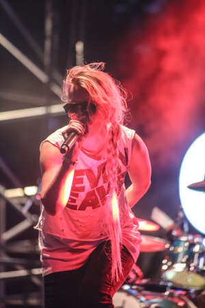 MINSK, BELARUS - JULY 3: Sandra Nasic and Guano Apes rock band perform during Most festival on Borovaya airfield in Minsk, July 3, 2014