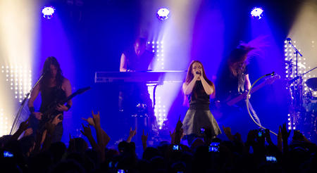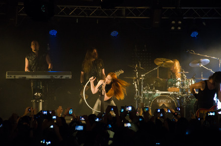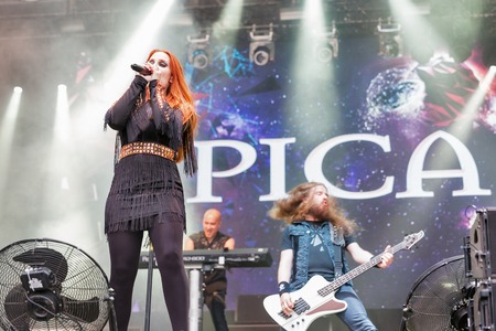 KIEV, UKRAINE - JULY 04, 2018: Dutch symphonic metal rock band Epica performs live at the Atlas Weekend Festival in National Expocenter.