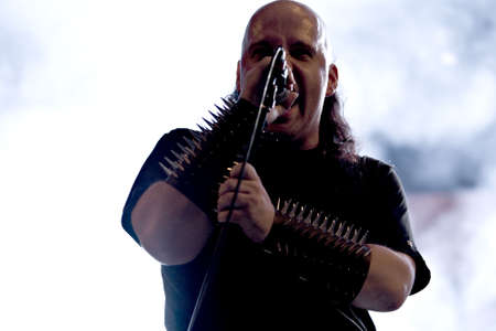 Vladivostok, Russia - February 14, 2022: Peter Tagtgren and Swedish Metal band Pain perform on the stage Fesco hall.