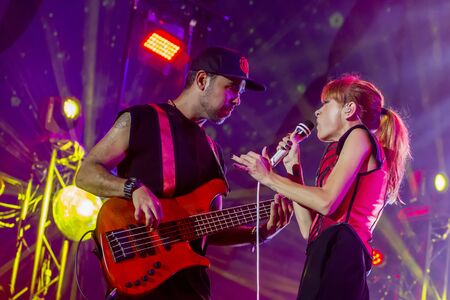 FARO, PORTUGAL: 6th SEPTEMBER, 2019 - Amor Electro band, performs on Festival F, a big festival on the city of Faro, Portugal.