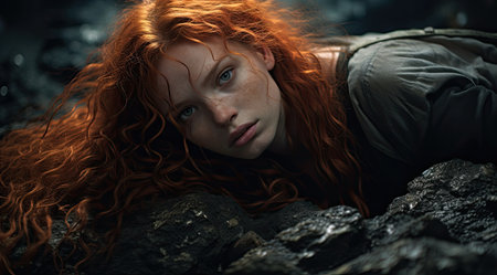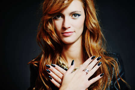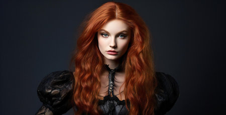 Portrait of a beautiful young woman with red hair. Studio shot.