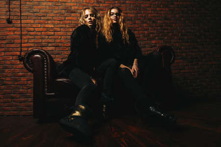 Beautiful blond women in mink coats posing in a luxurious interior. Fashion, beauty. Winter collection.