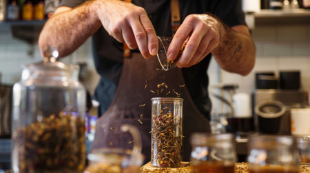 A man explains his reasoning behind blending bold black teas with floral chamomile for a unique flavor profile