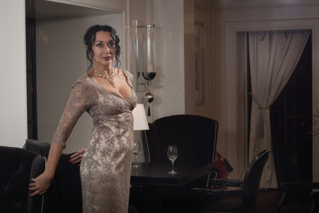 Sexy woman in evening dress.