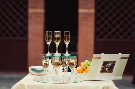 Glass of champagne in a hand of the groom