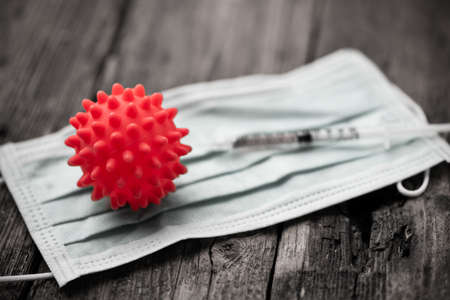 Coronavirus And Protective Medical Disposable Masks On A wooden