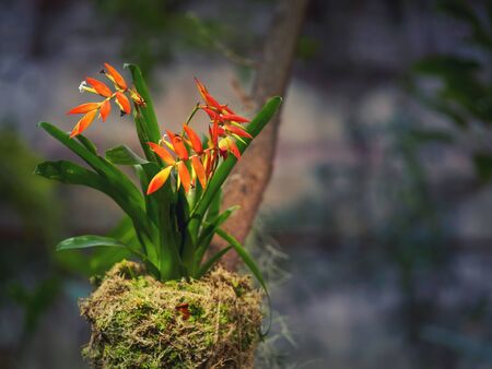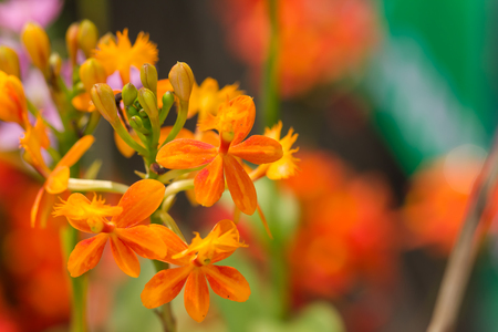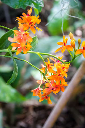 Beautiful orchid flower grow in tropical garden with natural background, wallpaper natural closeup macro, postcard beauty and agriculture idea concept floral design, beautiful flower bloom