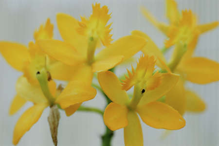 Beautiful closeup of an orchid White Oncidium Twinkle mini orchid. Selective focus