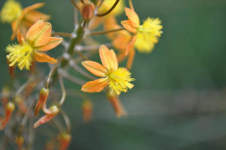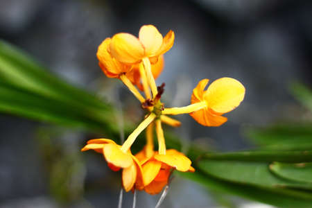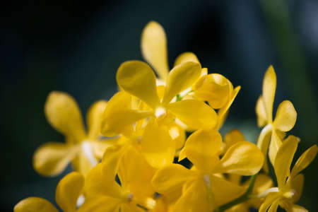 Dainty flowering and blooming yellow tropical flowers in a garden.