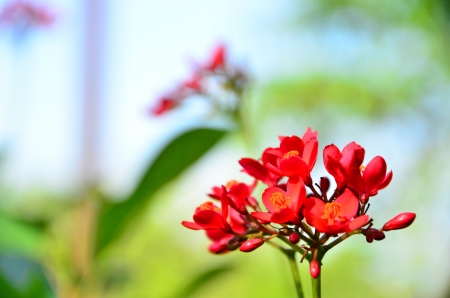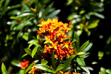 Close up red flower and other name Ixora flower , Spike flowers in garden.