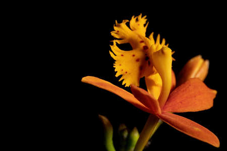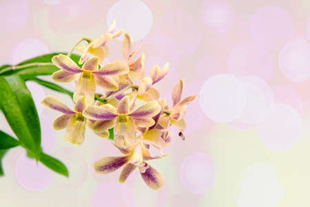 Beautiful yellow and pastel pink orchid flowering and blooming.