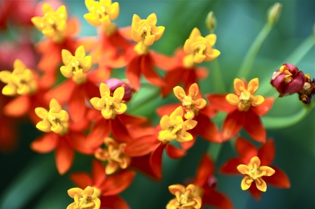 Asclepias curassavica. Close up macro shot of tropical milkweed flower. Milkweed blooming - this is the primary source for monarch butterflies.