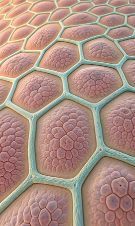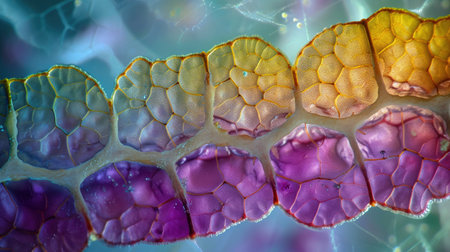 Close-up view of colorful cellular structures, highlighting unique patterns and textures, illustrating the complexity of microscopic life and its natural beauty