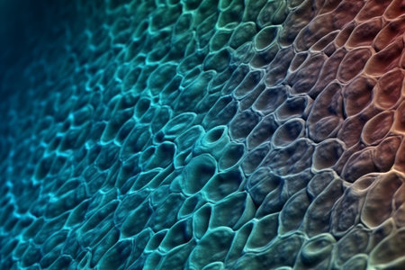 A stunning close-up of colorful cells, showcasing intricate patterns and textures. The vibrant colors and details illustrate the beauty of microscopic biology in an abstract way. Generative AI