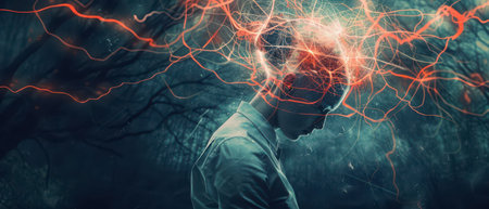 Surrealistic image of a man experiencing mental energy release.