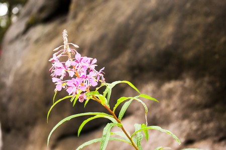 Fireweed close-up. Beautiful violet pink blossoming fireweed flowers during sunny summer day