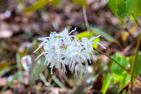 Alpine barrenwort leaves and flowers - Latin name - Epimedium alpinum