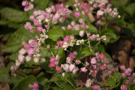 The close up of Coral Vine or Antigonon leptopus Hook flower