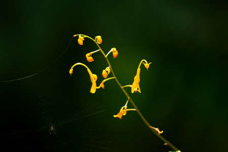 Beautiful small flowers blooming on the branches in the forest Dark background