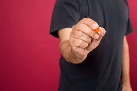 Rifampicin capsule for treatment tuberculosis and leprosy. Antibiotic resistance of tuberculosis (TB). Antituberculosis drug. Red pills produce reddish coloration of urine, sweat, sputum, and tears.