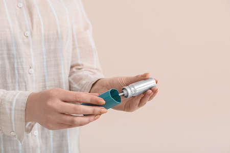 Auto Epinephrine Injector. Patient Doing Leg Injection