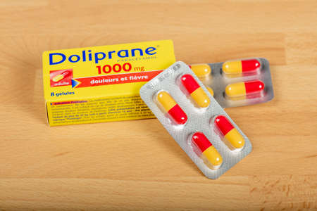 Paris, France - June 19, 2020 : Box of doliprane, a paracetamol-based analgesic .France wants to relocate its production of Paracetamol on its territory