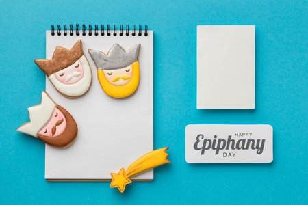 top view three kings with cardboard notebook epiphany day