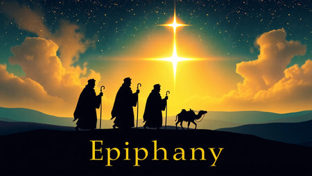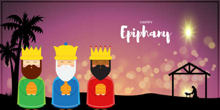 Vector illustration of Epiphany, Christian festival, three wise men