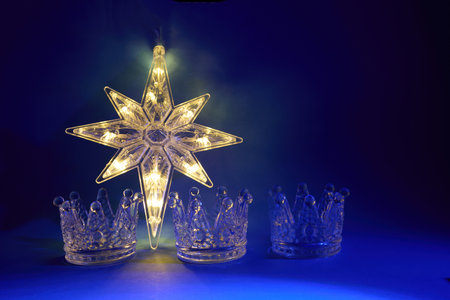 Bethlehem Star and Three Kings Crowns Symbolizing Epiphany Holiday