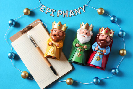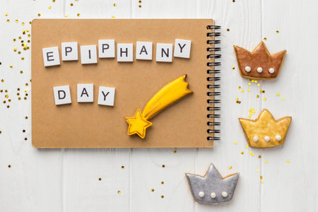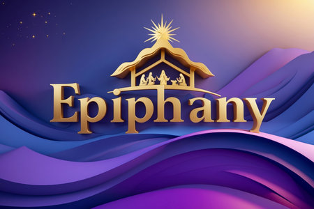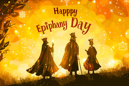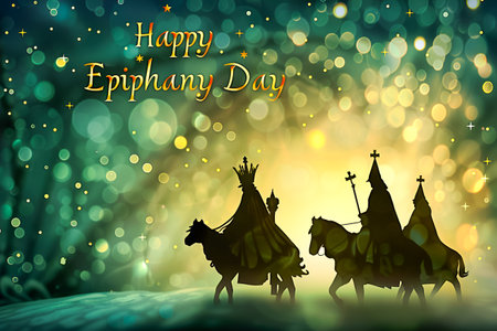 AI Generative Greeting card Christian holiday Epiphany, inscription text on a colored background