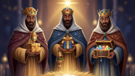 Epiphany is celebrated by the charming Three Kings. superlative generative AI image.