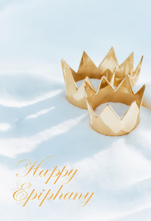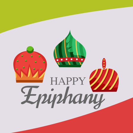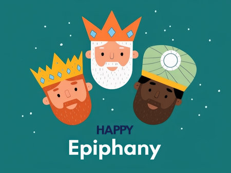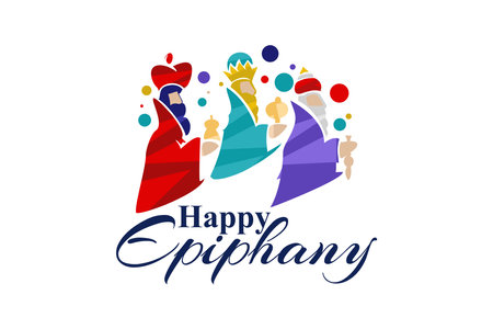 A colorful illustration celebrating the Epiphany with wise men and crowns
