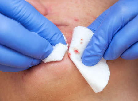 Backgrounds of lesions skin caused by acne on the face in the clinic.