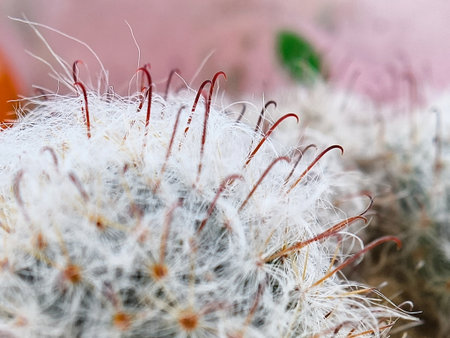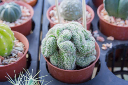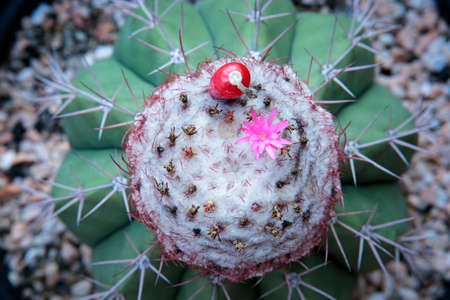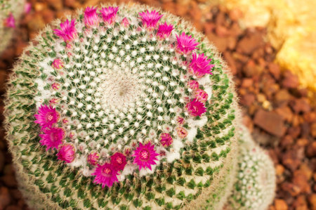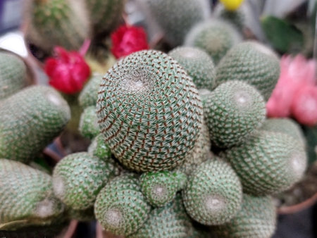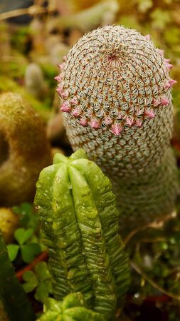 Close up Beautiful tropical Mammillaria geminispina cactus in the garden