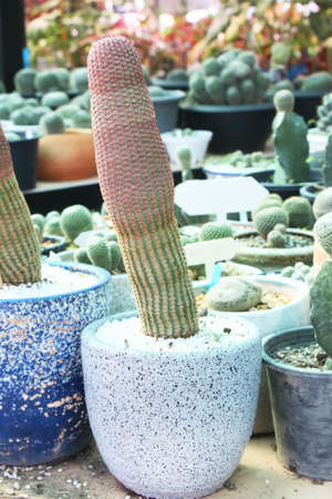 Cactus plants in the botanical garden, Thailand. Selective focus.