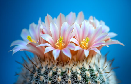 A close-up view of pink cactus flowers blooming beautifully on a cactus plant
