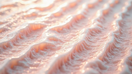 Gentle pink waves on a textured surface with soft lighting. That the image is generated using AI.